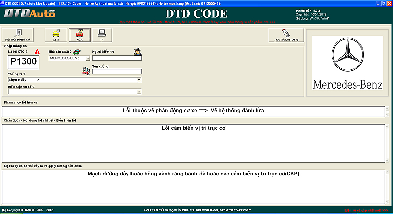 DTDAUTO trả lời: Chào Anh! DTDAuto trả lời Anh như sau: Đây là mã lỗi riêng của nhà sản xuất vì thế tương ứng với mỗi nhà sản xuất thì nội dung lỗi sẽ khác nhau. Để biết chính xác các lỗi này Anh cần có phần mềm tiếng Việt chuyên nghiệp tra mã lỗi ô tô DTD Code để tra cứu chính xác và tin cậy: Ví dụ: Mã lỗi P1300 của Hyundai | ||