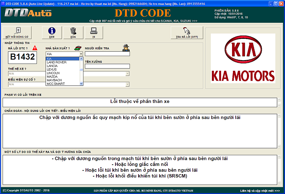 - Chức năng đầy đủ, chuyên nghiệp và hoàn hảo - Hỗ trợ tra cứu sơ đồ mạch điện và các dữ liệu sửa chữa khác - Phù hợp với thị trường xe Việt Nam đặc biệt hỗ trợ mạnh các dòng xe con, du lịch, xe tải, xe khách của Hàn Quốc và Nhật Bản - Nội dung mã lỗi tiếng Việt chính xác, chi tiết và chuẩn khoa học của DTDAuto - Công nghệ mới nhất và cập nhật - Thiết kế hiện đại, hoạt động tin cậy, chất lượng cao - Cập nhật dữ liệu miễn phí qua internet - Hỗ trợ kỹ thuật chuyên nghiệp trực tiếp từ DTDAuto |