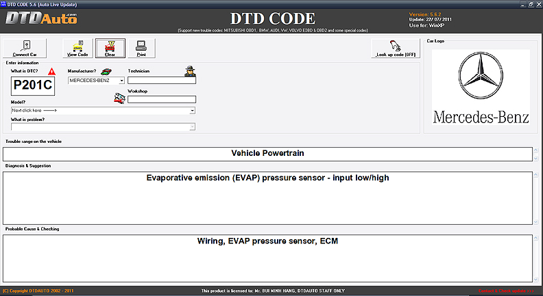 - Support information of fault code with DTD Code software - Free and automatically updated the newest version DTD Code software - Online support technical by DTDAUTO technician - Warranty 12 month for techniques faults of product |